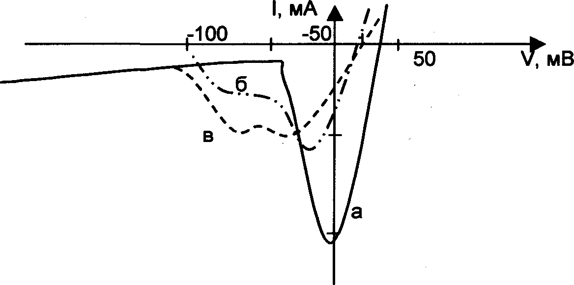 а - пиковые значения натриевого тока до приложения аконитина б - через 5 мин после приложения аконитина в - через 29 мин после приложения аконитина