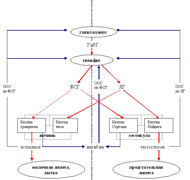 ФСГ, а тестостерона яичками (клетки Лейдига) – ЛГ. (см.
